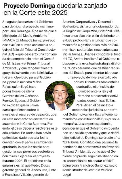 Fallo del TC allana camino para Dominga y empresa iniciará en julio trámite clave para construcción del proyecto - (Diario Financiero)