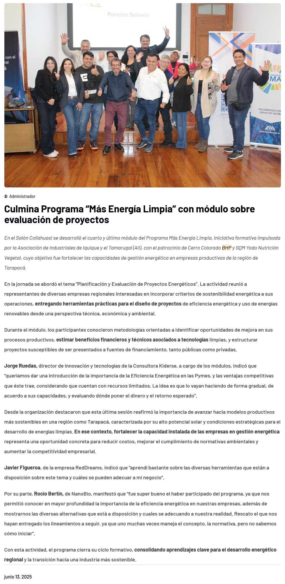 Culmina Programa “Más Energía Limpia” con módulo sobre evaluación de proyectos - (ceinoticias.cl)