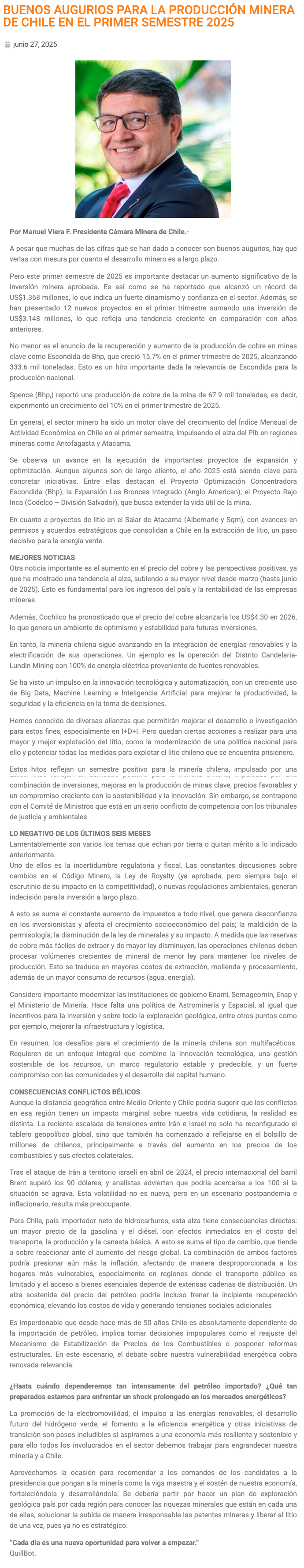 Buenos augurios para la minería en el primer semestre 2025 - (reporteminero)
