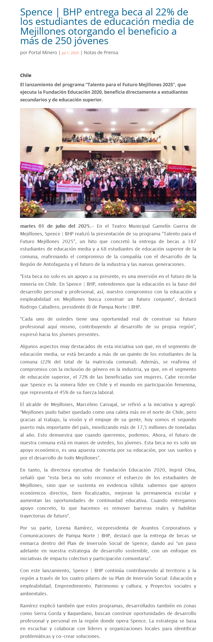 Spence | BHP entrega beca al 22% de los estudiantes de educación media de Mejillones otorgando el beneficio a más de 250 jóvenes - (trendconomy.cl)