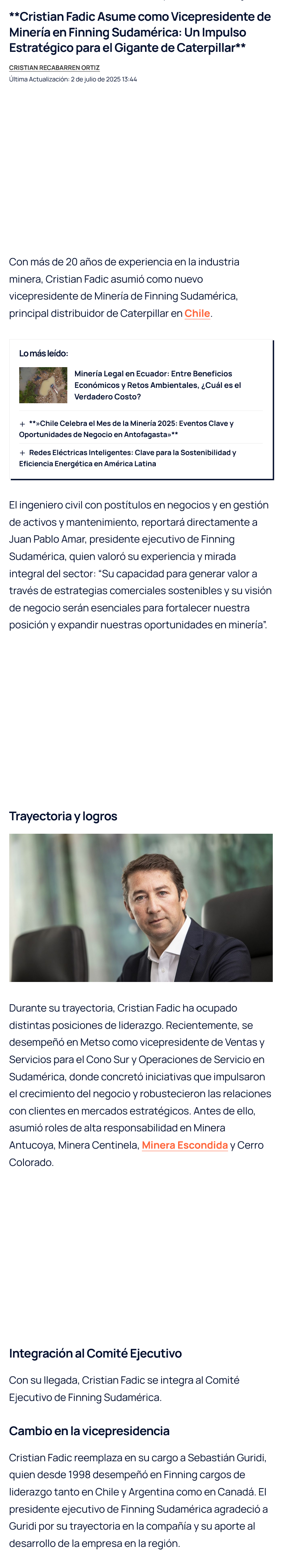 Cristian Fadic asume como nuevo vicepresidente de Minería Finning Sudamérica - (Nostálgica Online)