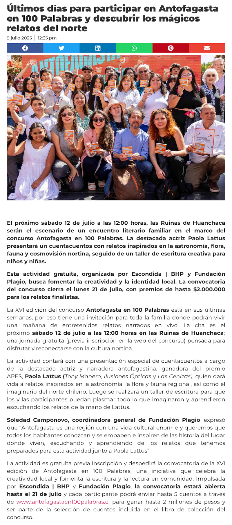 Últimos días para participar en Antofagasta en 100 Palabras y descubrir los mágicos relatos del norte - (tierramarillano.cl)