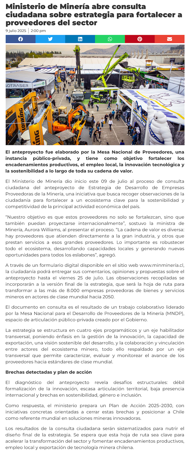 Ministerio de Minería abre consulta ciudadana sobre estrategia para fortalecer a proveedores del sector - (mvcomunicaciones.cl)