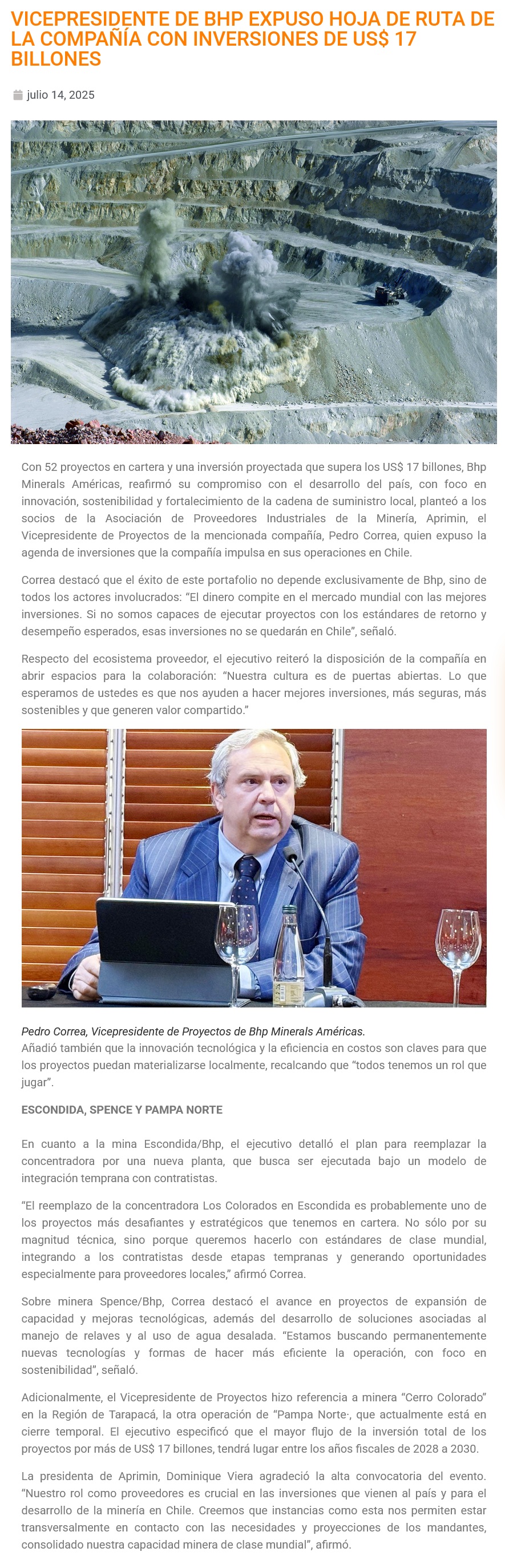 Pedro Correa de BHP expone hoja de ruta de inversiones por US$ 17 billones ante socios de APRIMIN - (Nostálgica Online)