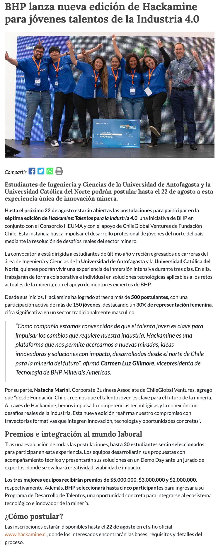 BHP lanza nueva edición de Hackamine para jóvenes talentos de la industria 4.0 - (portaleduca.cl)