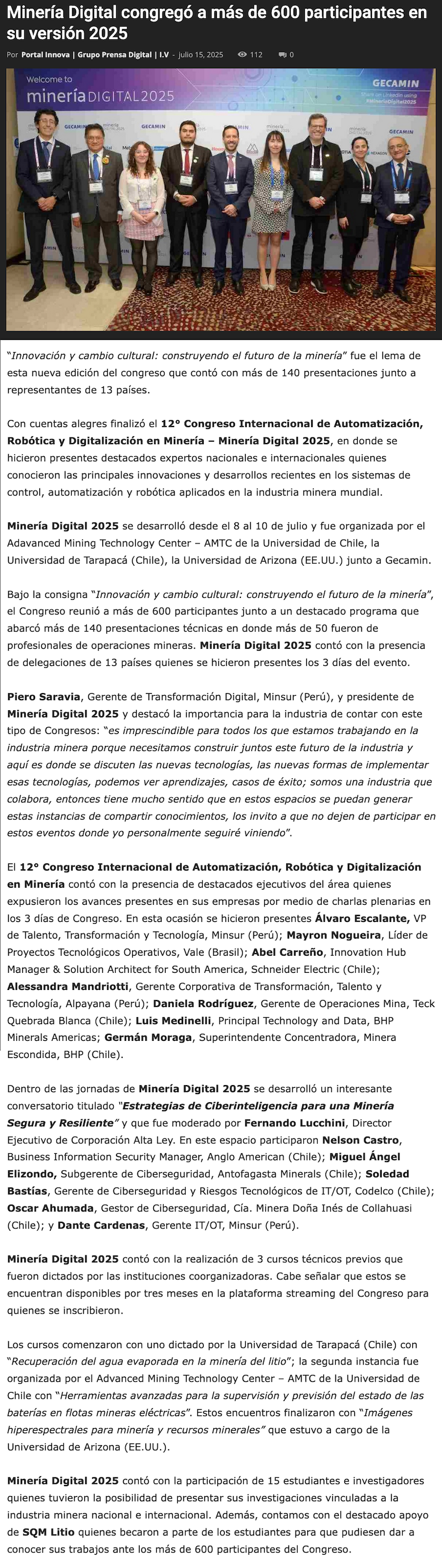 Minería Digital congregó a más de 600 participantes en su versión 2025 - (prensaeventos.cl)