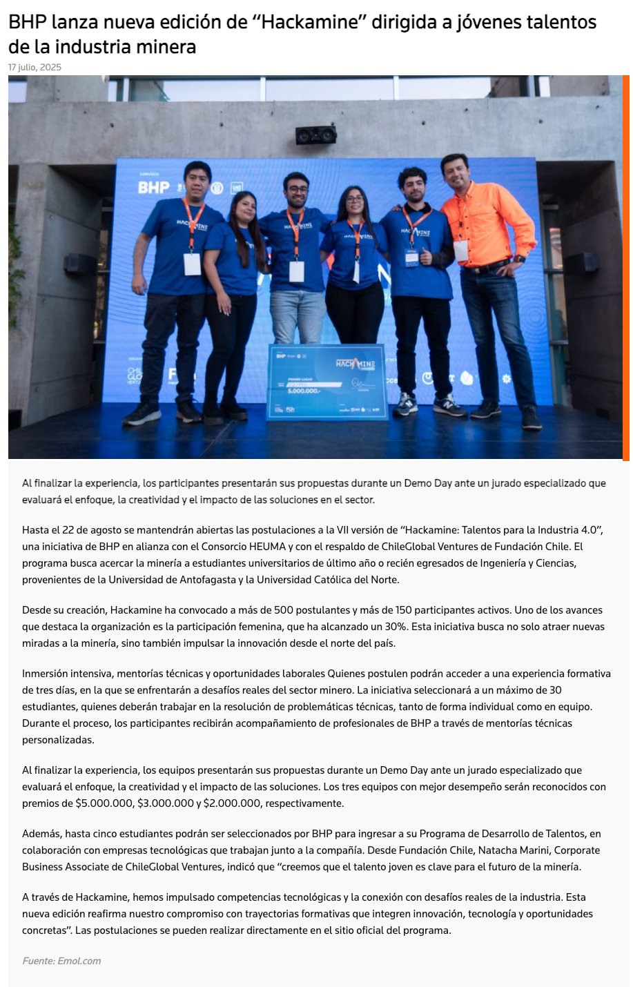 BHP lanza nueva edición de Hackamine para jóvenes talentos de la industria minera 4.0 - (guiaminera.cl)