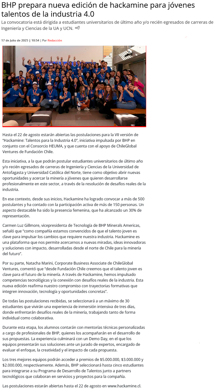 BHP lanza nueva edición de Hackamine para jóvenes talentos de la industria minera 4.0 - (guiaminera.cl)