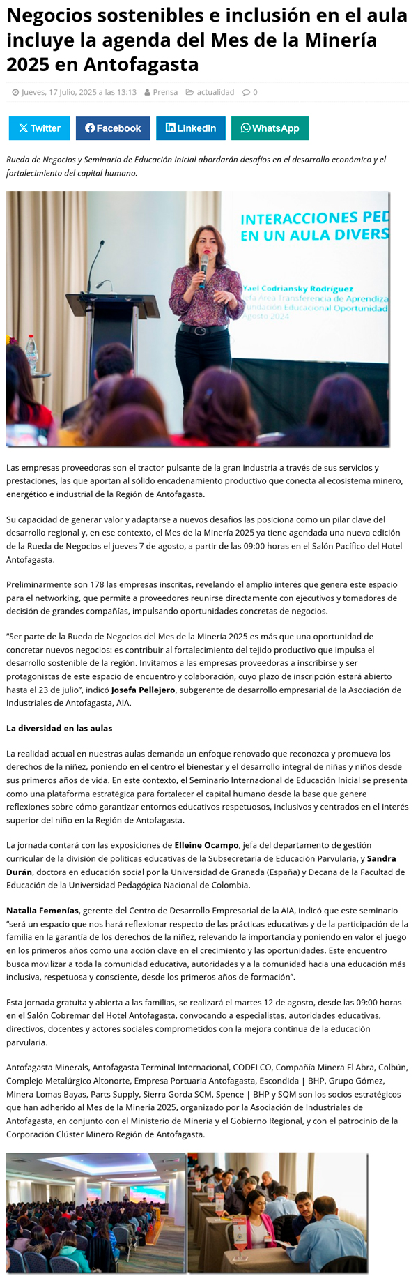 Mes de la Minería 2025: AIA destaca realización de Rueda de Negocios y Seminario de Educación Inicial - (mch.cl)