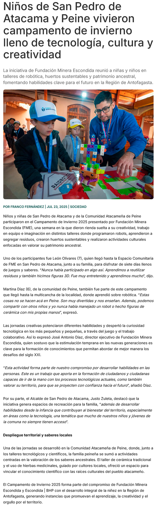 Niños y niñas de San Pedro de Atacama y Peine programaron robots en Campamento de Invierno 2025 - (calamaenlinea.cl)