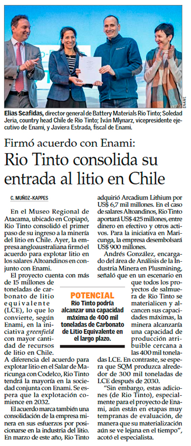 Acuerdo entre Enami y Rio Tinto proyecta 3 mil empleos - (El Diario de Atacama)