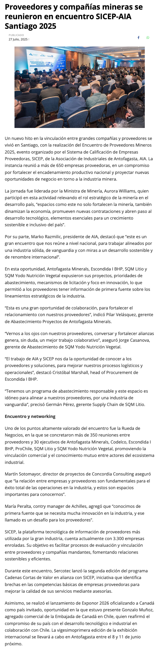 Proveedores y compañías mineras se reunieron en el encuentro SICEP-AIA Santiago 2025 - (timeline)