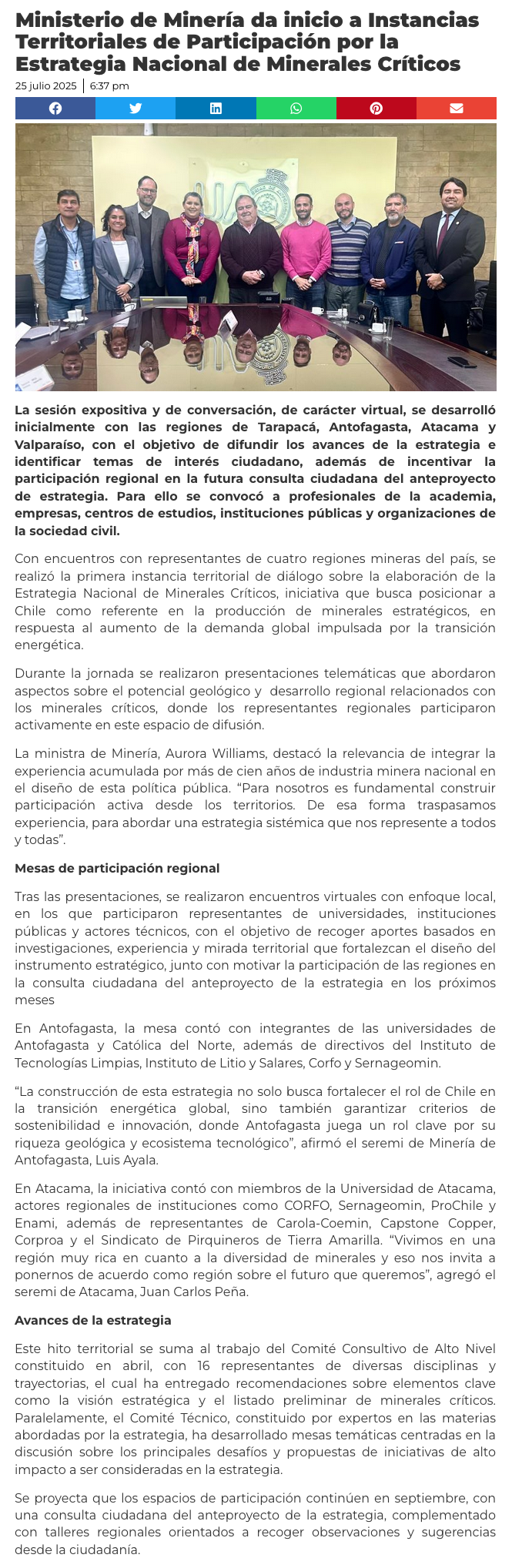 Ministerio de Minería da inicio a Instancias Territoriales de Participación por la Estrategia Nacional de Minerales Críticos - (Nostálgica Online)