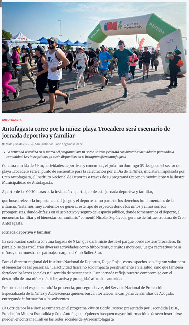 Antofagasta corre por la niñez: playa Trocadero será escenario de jornada deportiva y familiar - (termometro.cl)