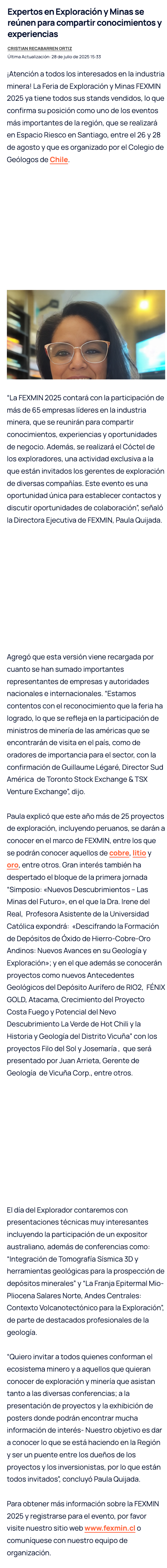 FEXMIN 2025: Expertos en Exploración y Minas se reúnen para compartir conocimientos y experiencias - (portalinnova.cl)