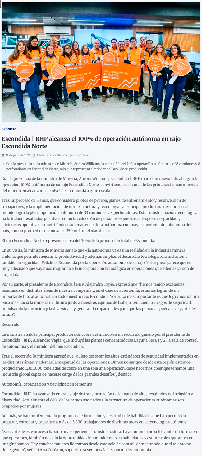 Escondida | BHP alcanza el 100% de operación autónoma en rajo Escondida Norte - (timeline)