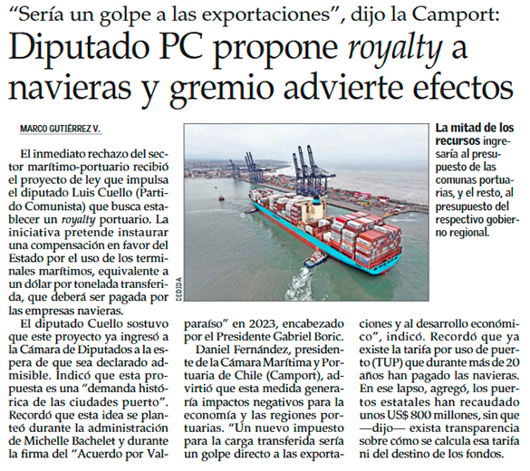 Se inicia ofensiva en Congreso Nacional por royalty portuario - (El Mercurio de Valparaíso)