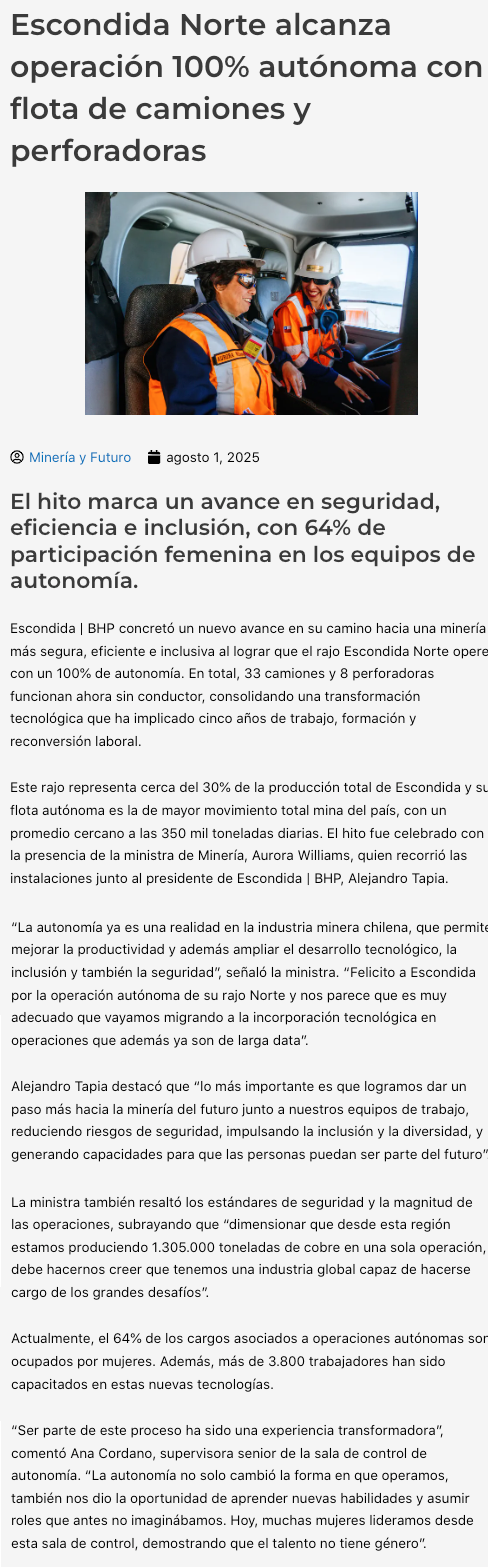 Escondida BHP alcanza 100% de autonomía a gran escala - (gmnews)