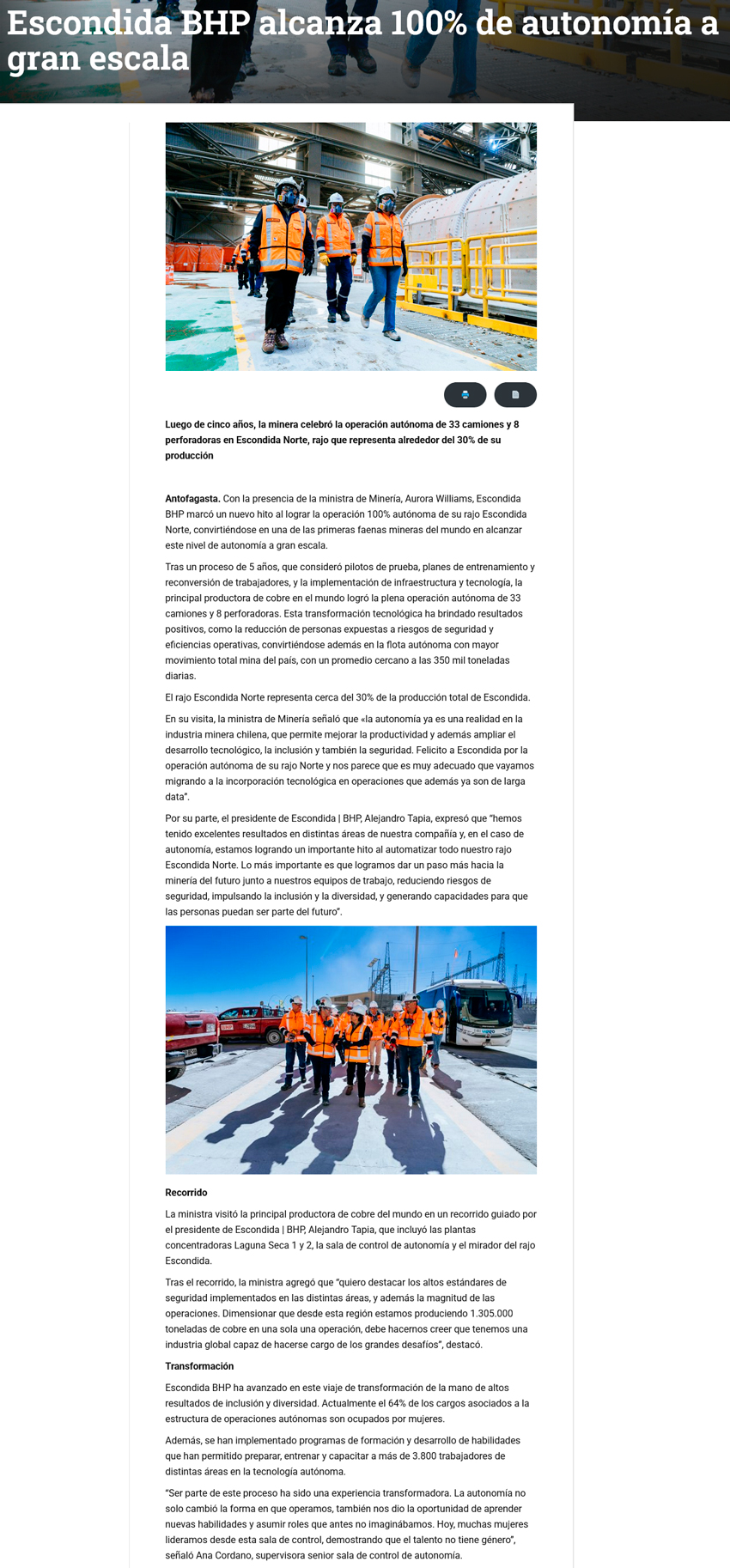 Escondida Norte alcanza operación 100% autónoma con flota de camiones y perforadoras - (mineriayfuturo.cl)