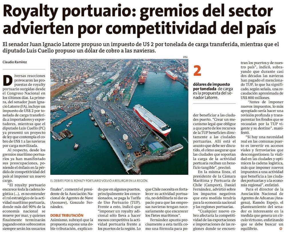 Opción de royalty portuario: gremios del sector advierten por competitividad del país - (El Mercurio de Valparaíso)