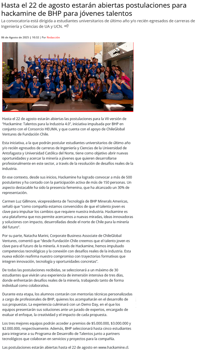BHP lanza nueva edición de Hackamine para jóvenes talentos de la industria 4.0 - (elreporterodeiquique)