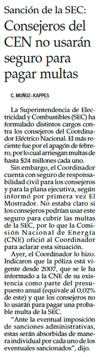 Consejeros aseguran que multas de la SEC no serán financiadas con el presupuesto del Coordinador - (Diario Financiero)