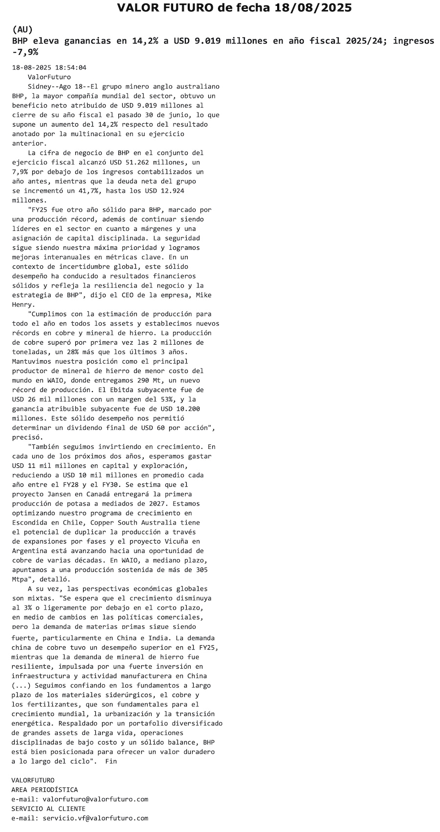 Beneficio de BHP cae al nivel más bajo ante abundante oferta mundial de mineral de hierro - (bloomberglinea.com)
