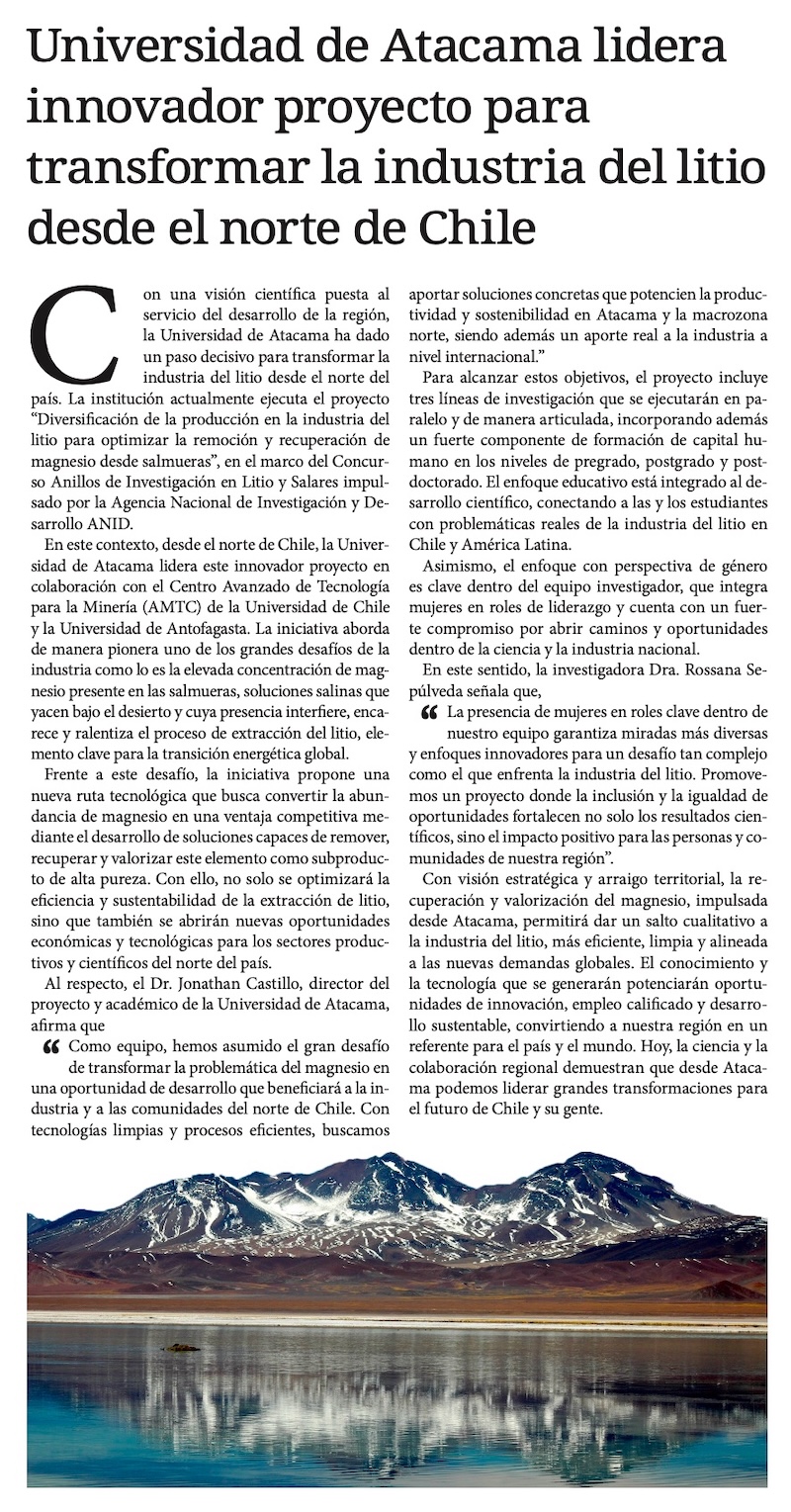 Universidad de Atacama lidera innovador proyecto para transformar la industria del Litio desde el Norte de Chile - (madero.cl)