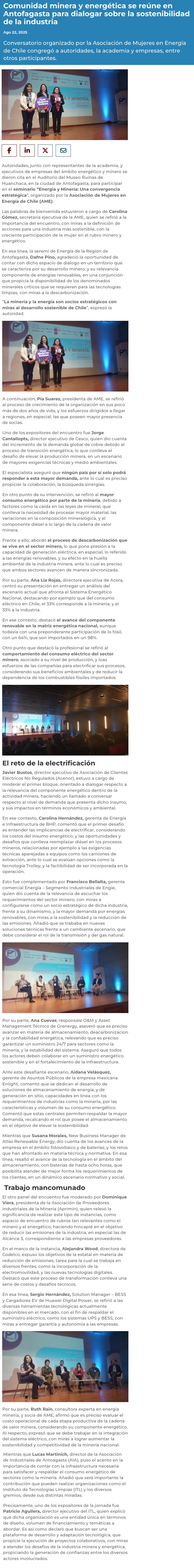 Comunidad minera y energética se reúne en Antofagasta para dialogar sobre la sostenibilidad de la industria - (mch.cl)
