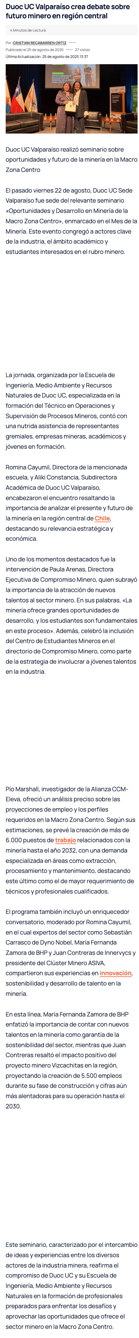 Duoc UC Valparaíso realizó seminario sobre oportunidades y futuro de la minería en la Macro Zona Centro - (reporteminero)