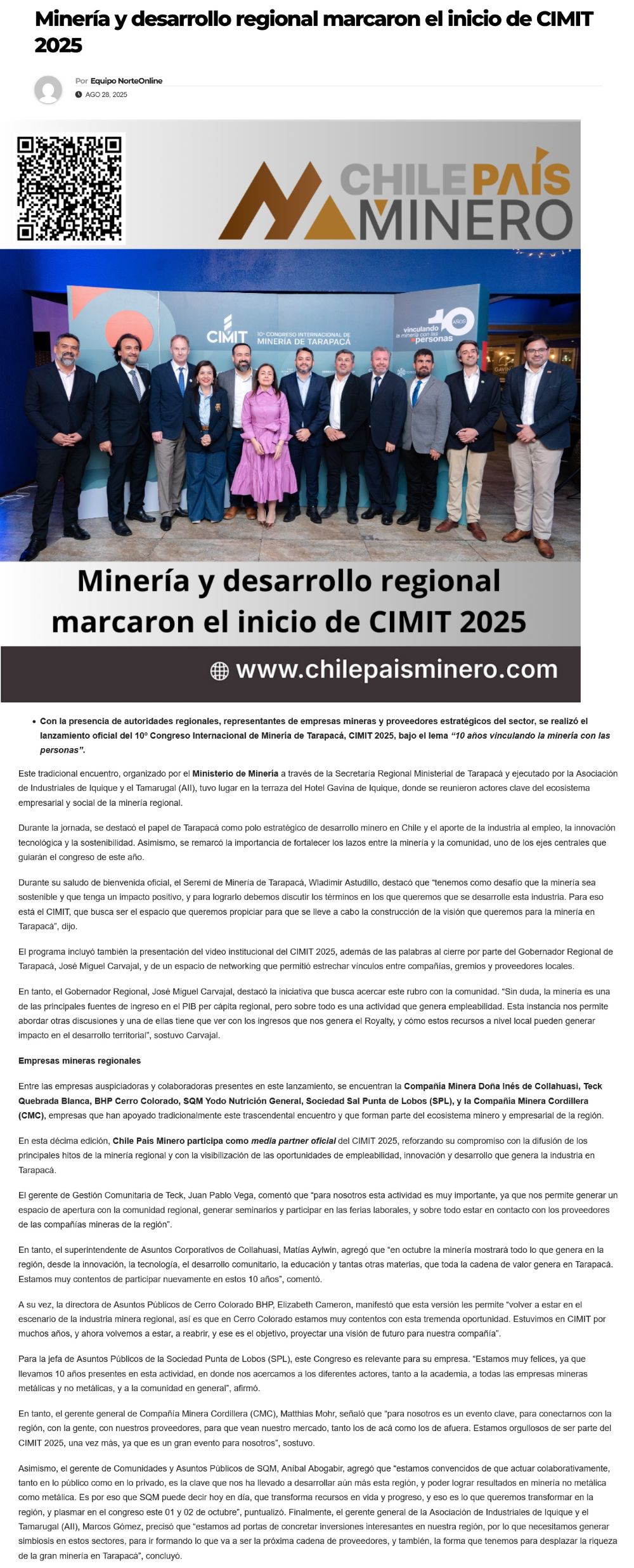 CIMIT 2025 | Lanzan Congreso Internacional de Minería de Tarapacá - (radiopaulina.cl)