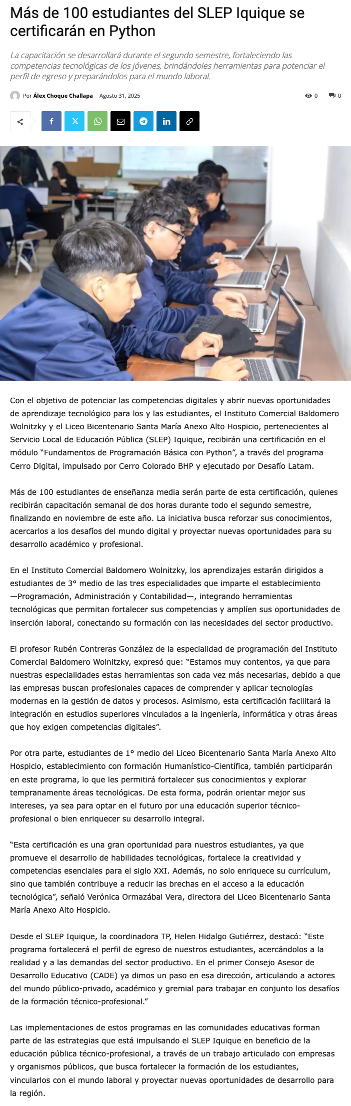 El nuevo lenguaje de la era digital: más de 100 estudiantes del SLEP Iquique se certificarán en Python - (El Longino de Iquique)