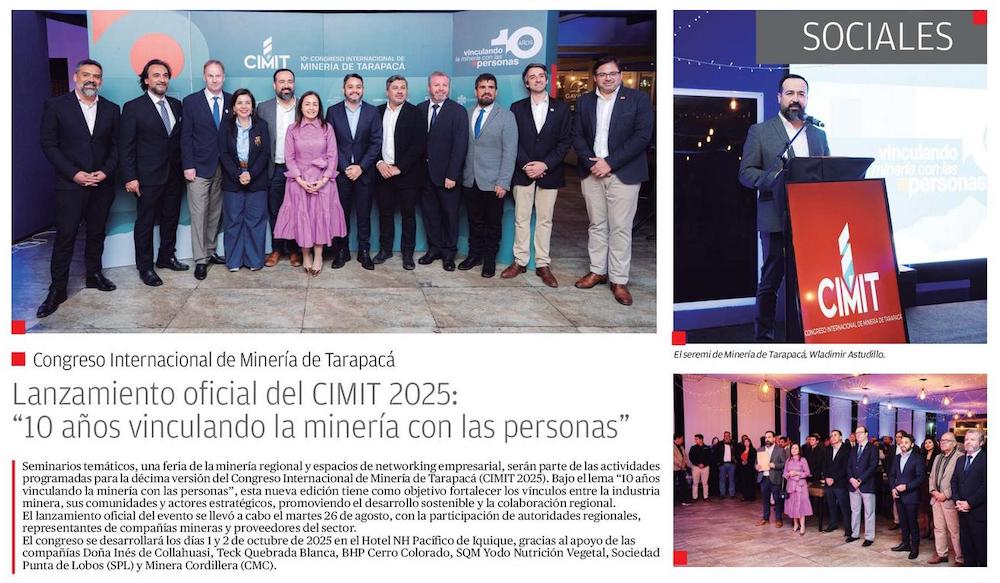 Lanzamiento oficial del CIMIT 2025: "10 años vinculando la minería con las personas" - (Estrella de Iquique)