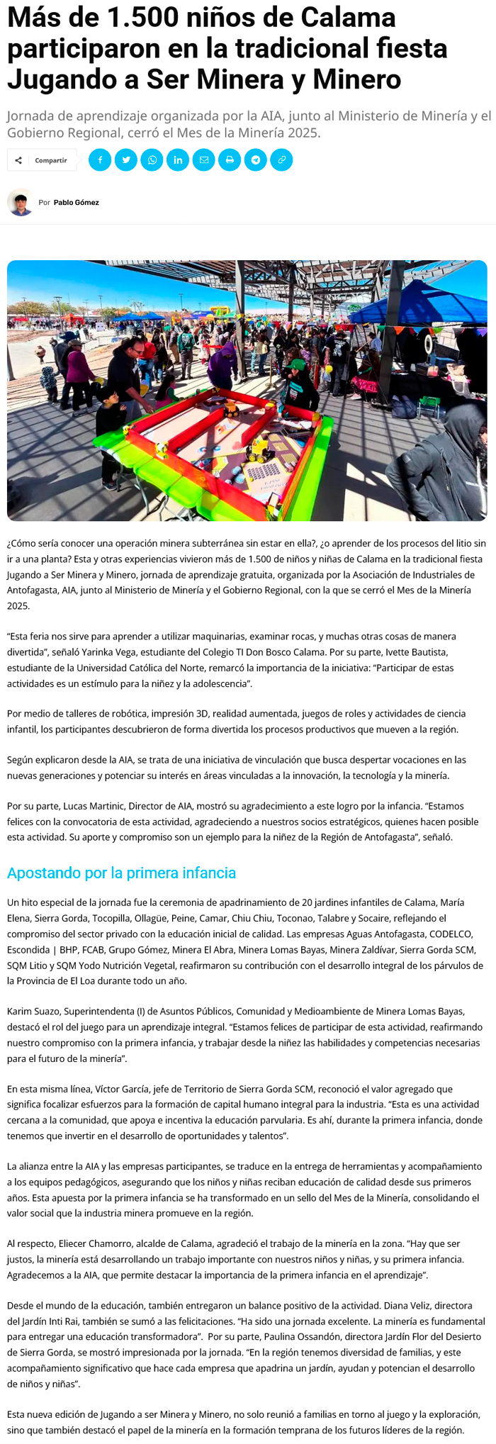 Niños y niñas se vinculan tempranamente con el mundo minero en Calama - (madero.cl)