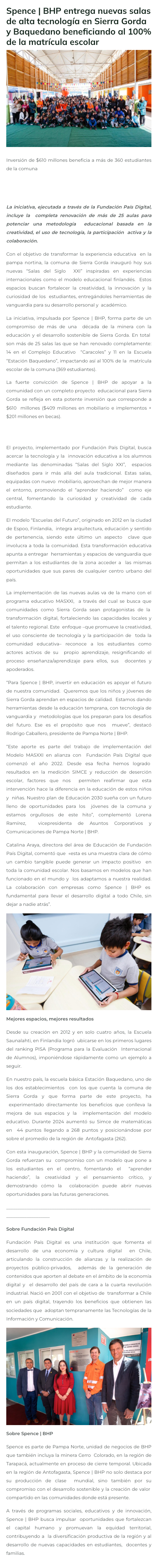 Spence | BHP entrega nuevas salas de alta tecnología en Sierra Gorda y Baquedano beneficiando al 100% de la matrícula escolar - (timeline)