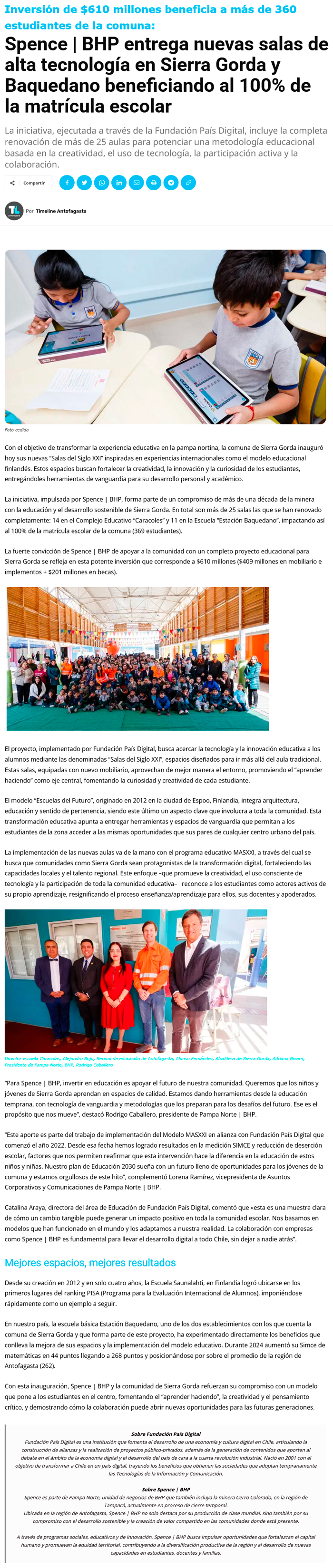 Spence | BHP entrega nuevas salas de alta tecnología en Sierra Gorda y Baquedano beneficiando al 100% de la matrícula escolar - (minerialocal.cl)