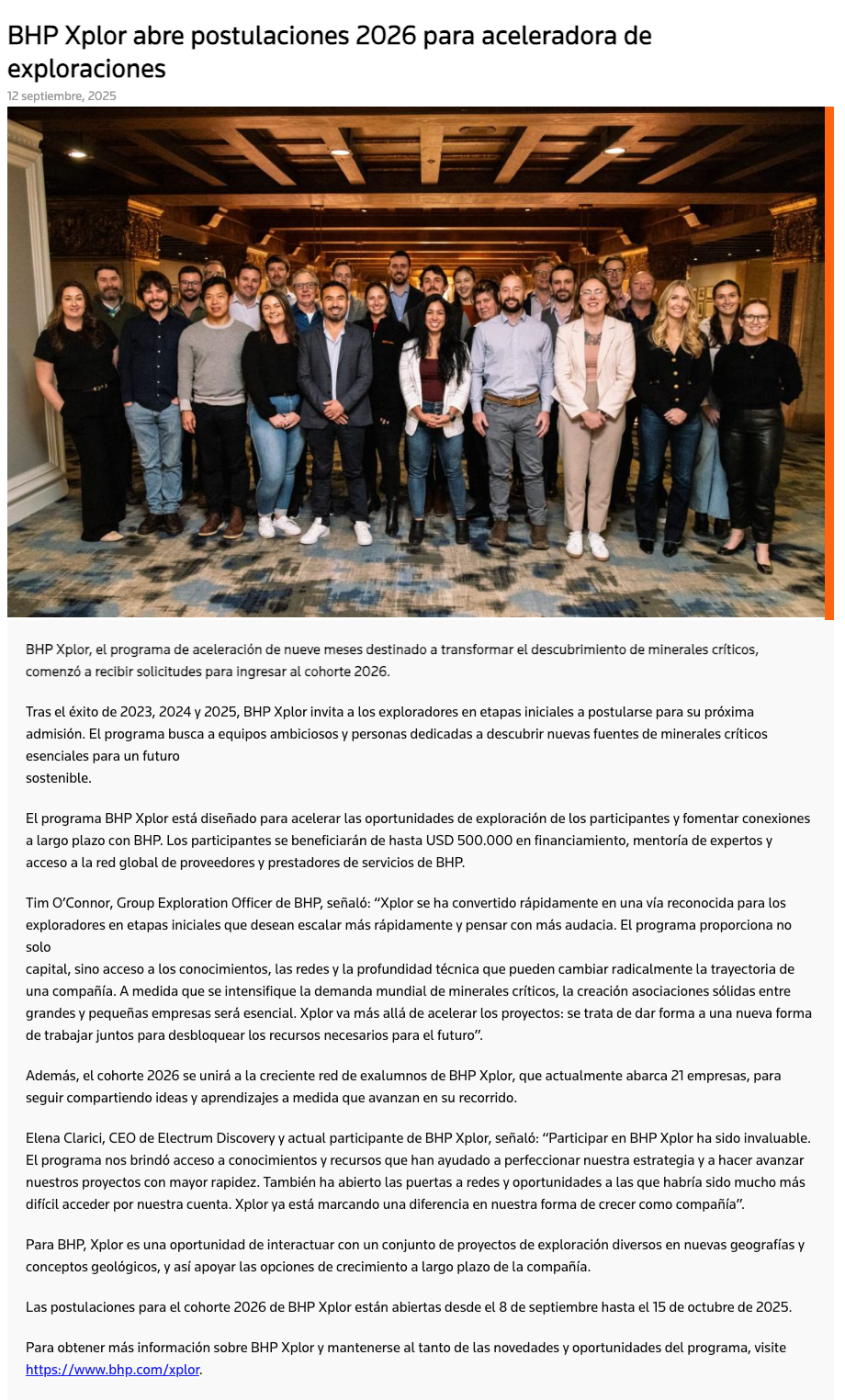 BHP lanza convocatoria 2026 de su aceleradora Xplor - (norteonline.cl)