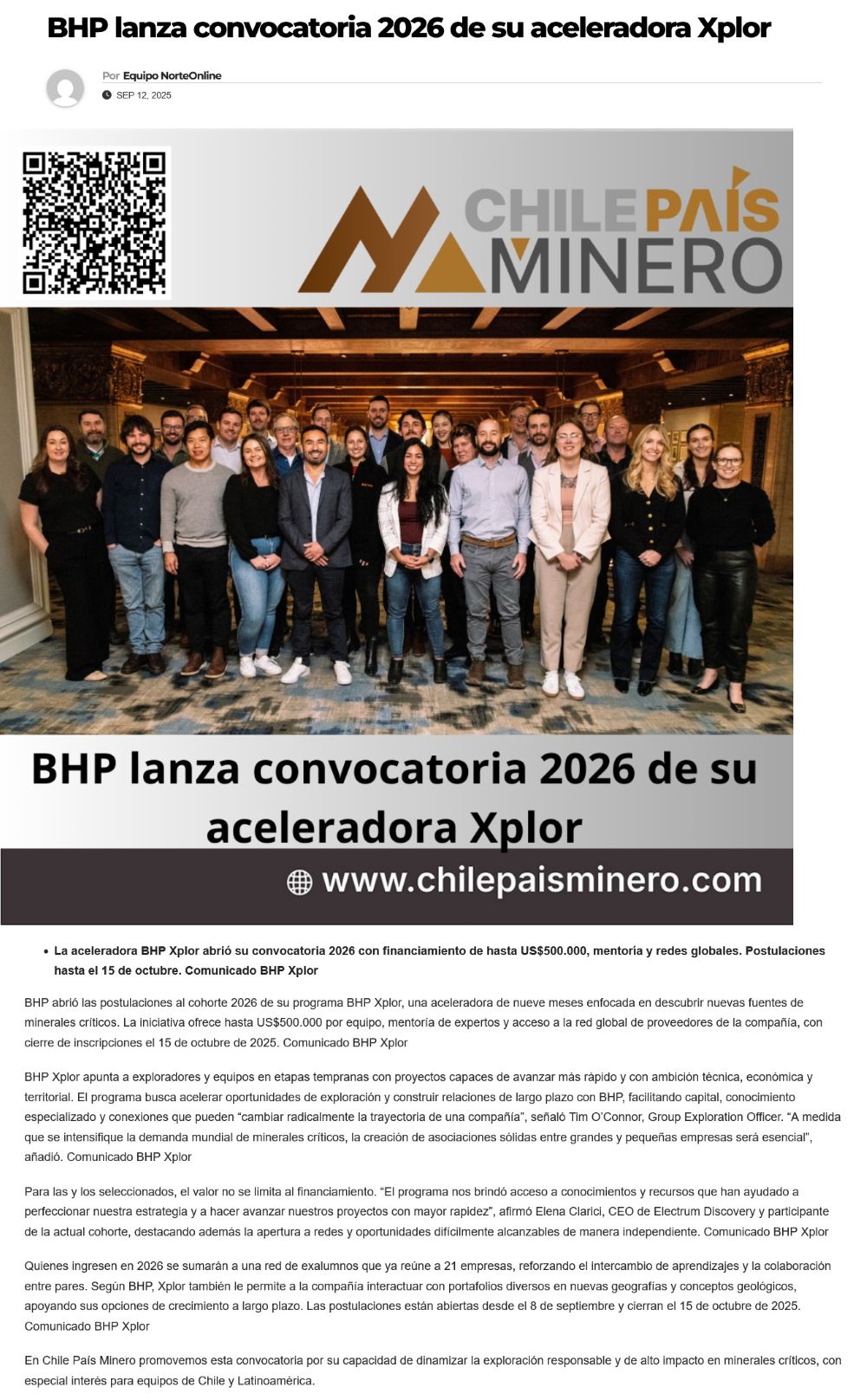 BHP Xplor abre postulaciones 2026 para aceleradora de exploraciones - (nuevaminería online)