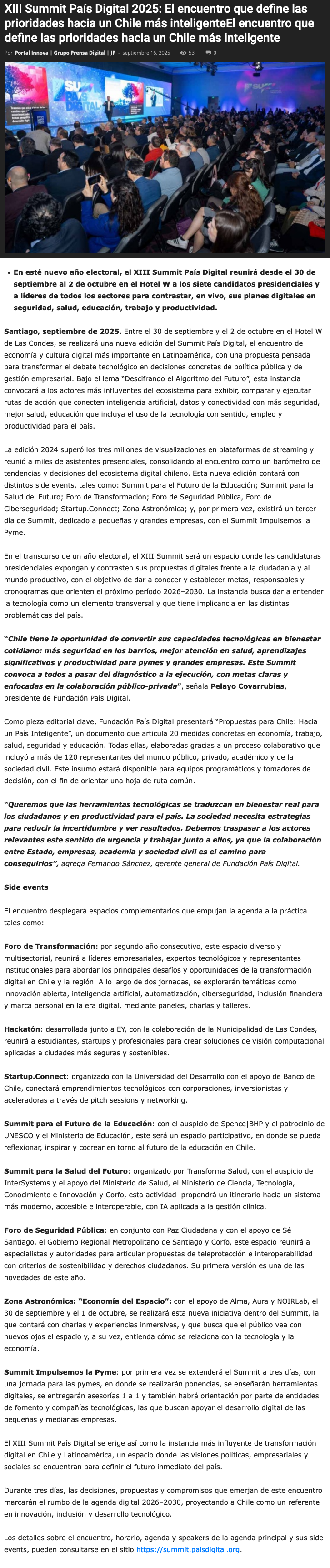 Contará con participación de candidatos presidenciales: anuncian detalles de Summit País Digital 2025 - (biobiochile online)