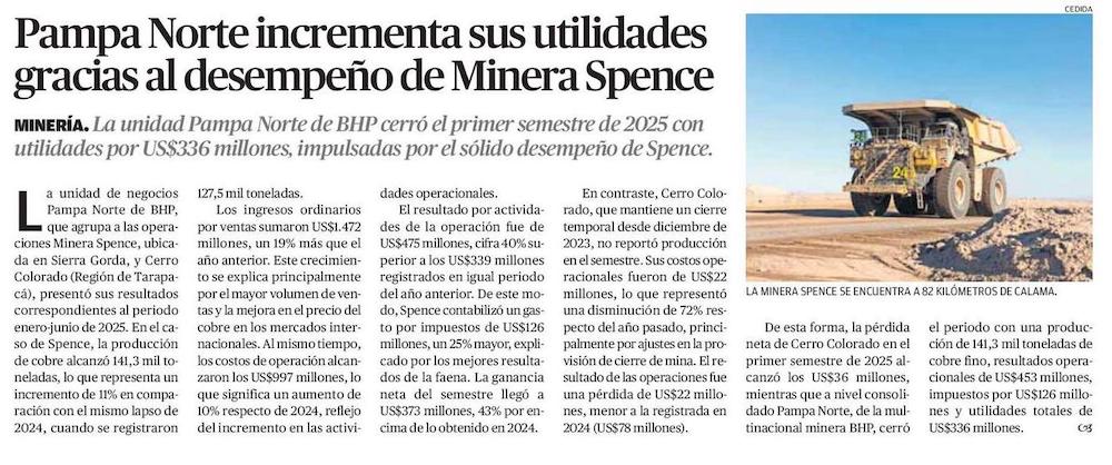 Pampa Norte incrementa sus utilidades gracias al desempeño de Minera Spence - (El Mercurio de Antofagasta)