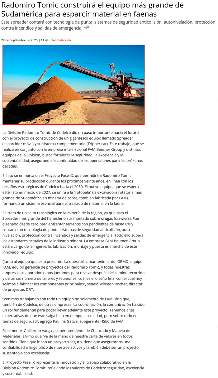 Spreader transformará el traslado de material en Radomiro Tomic - (La Estrella)