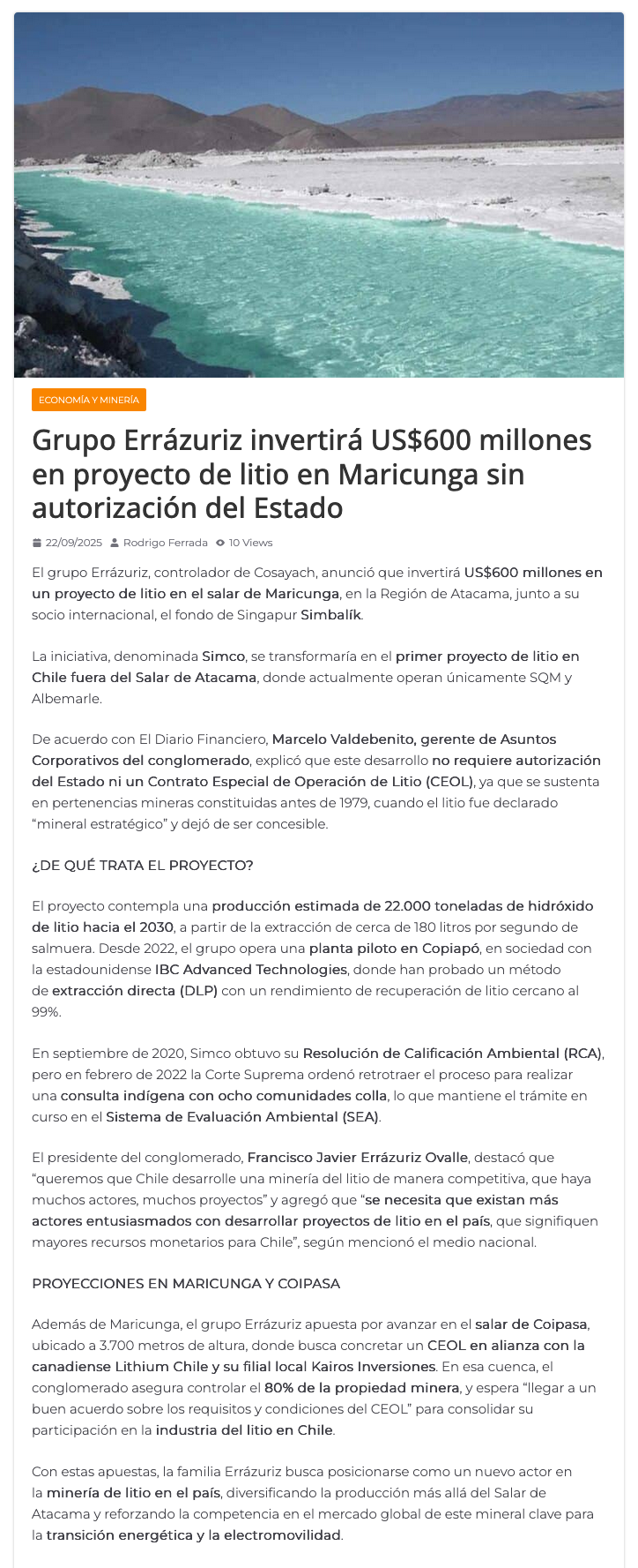 Lunes, 22 de Septiembre de 2025