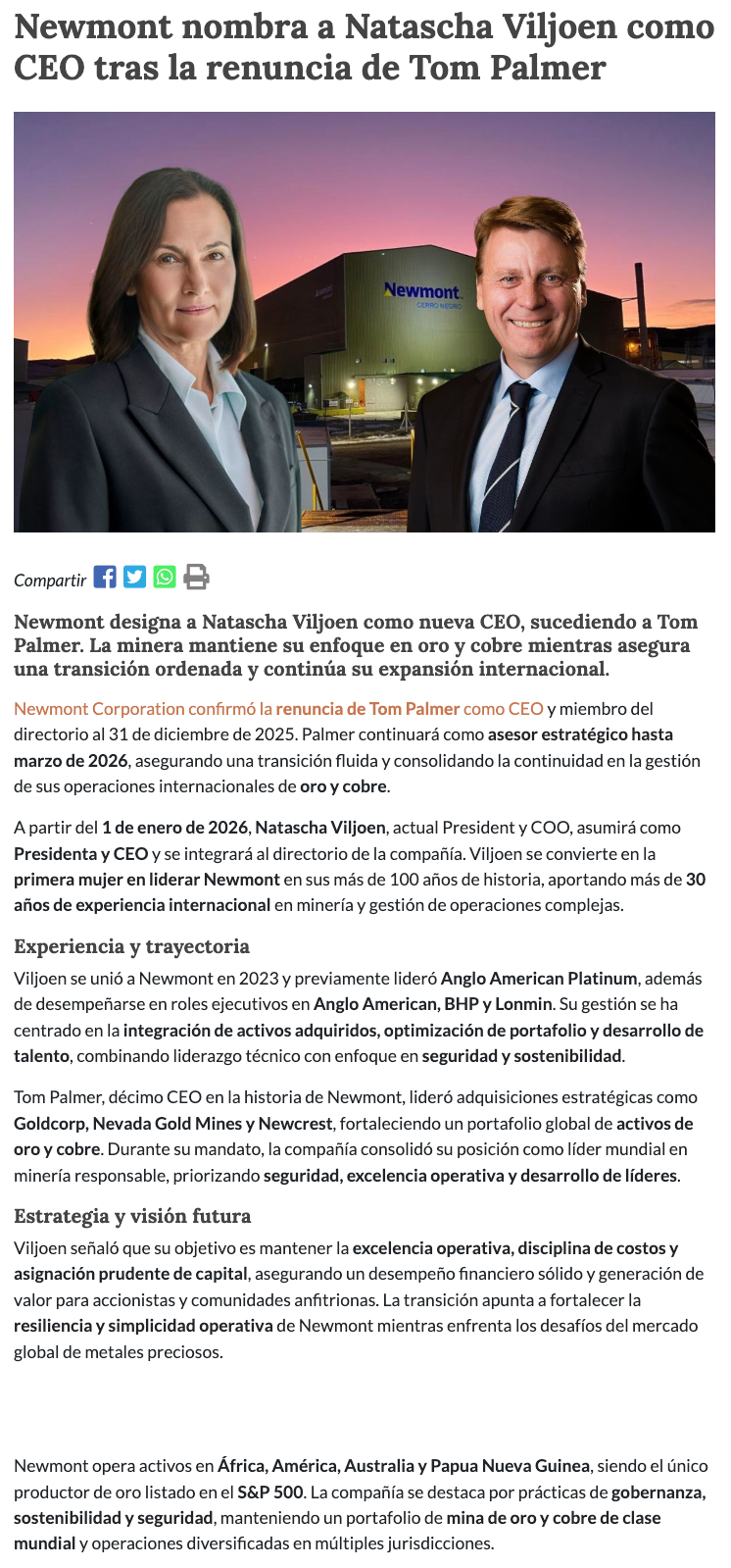 Dos grandes mineras anuncian salida de sus CEO el mismo día: Barrick y Newmont - (Pulso)