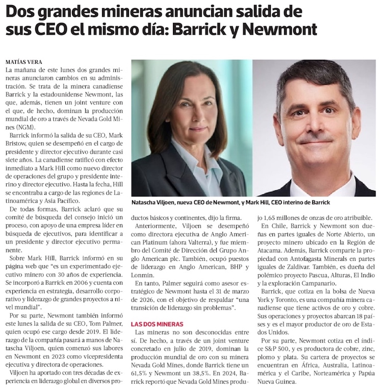 ¿Coincidencia?: Dos grandes mineras anuncian salida de sus CEO el mismo día - (La Tercera Online)