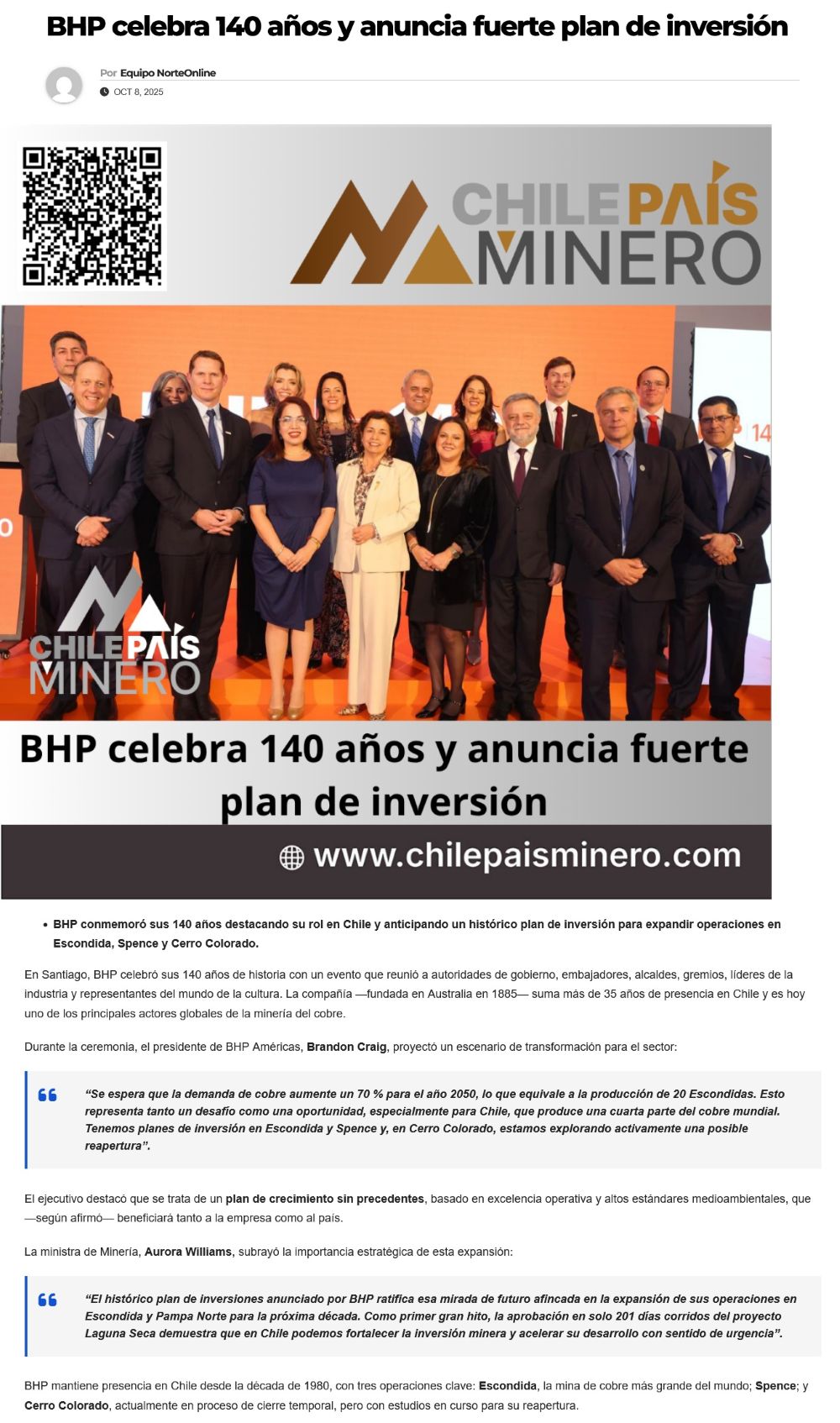 BHP celebra 140 años junto a ministra de Minería y autoridades - (redimin)
