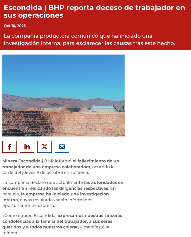 Trabajador de empresa colaboradora fallece en Minera Escondida BHP - (antofagasta.tv)
