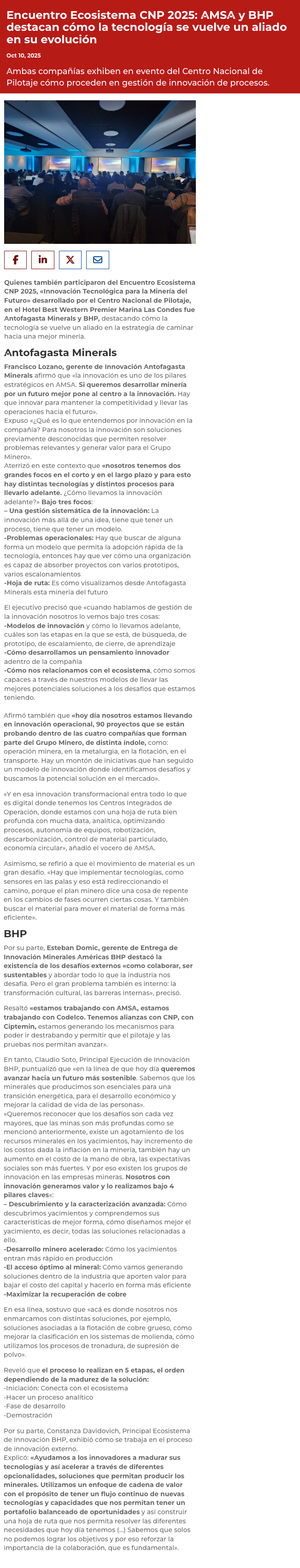 Encuentro CNP 2025: alianzas público-privadas impulsan la innovación minera en Chile - (reporteminero)