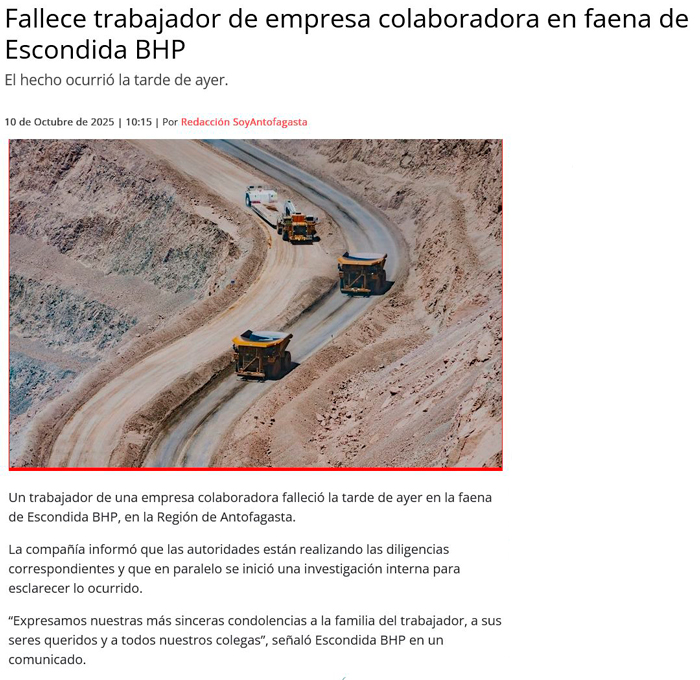 Trabajador de empresa colaboradora fallece en Minera Escondida BHP - (antofagasta.tv)