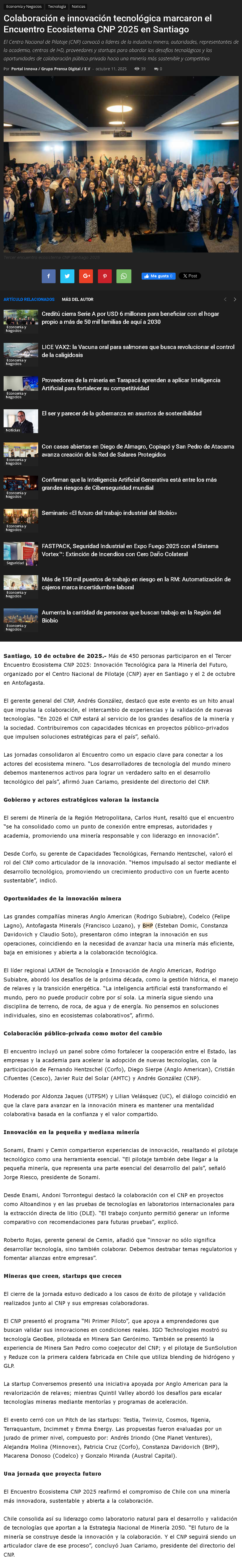 Encuentro Ecosistema CNP 2025: AMSA y BHP destacan cómo la tecnología se vuelve un aliado en su evolución - (mch.cl)