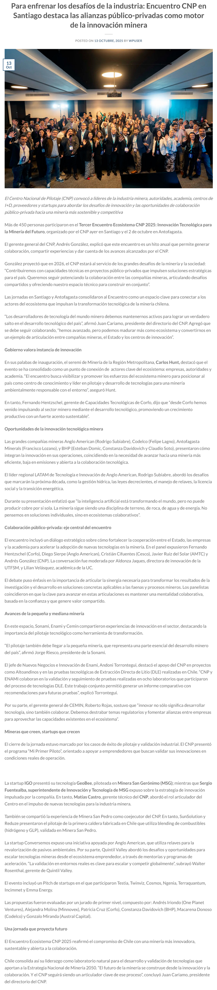 Encuentro CNP 2025 en Santiago refuerza la colaboración público-privada como eje de la innovación minera - (mineriayfuturo.cl)
